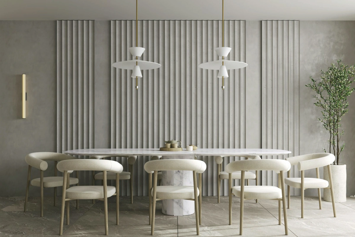 Flute Panels bring an intense character to walls and ceilings, elevating the visual appeal of any interior space. Whether in living rooms, offices, or hallways, these panels create a unique and stated look and atmosphere. Beyond walls and ceilings, Flute panels can be creatively integrated into furniture design, such as hidden doors or concealed storage spaces, adding both functionality and a unique aesthetic to your interiors.